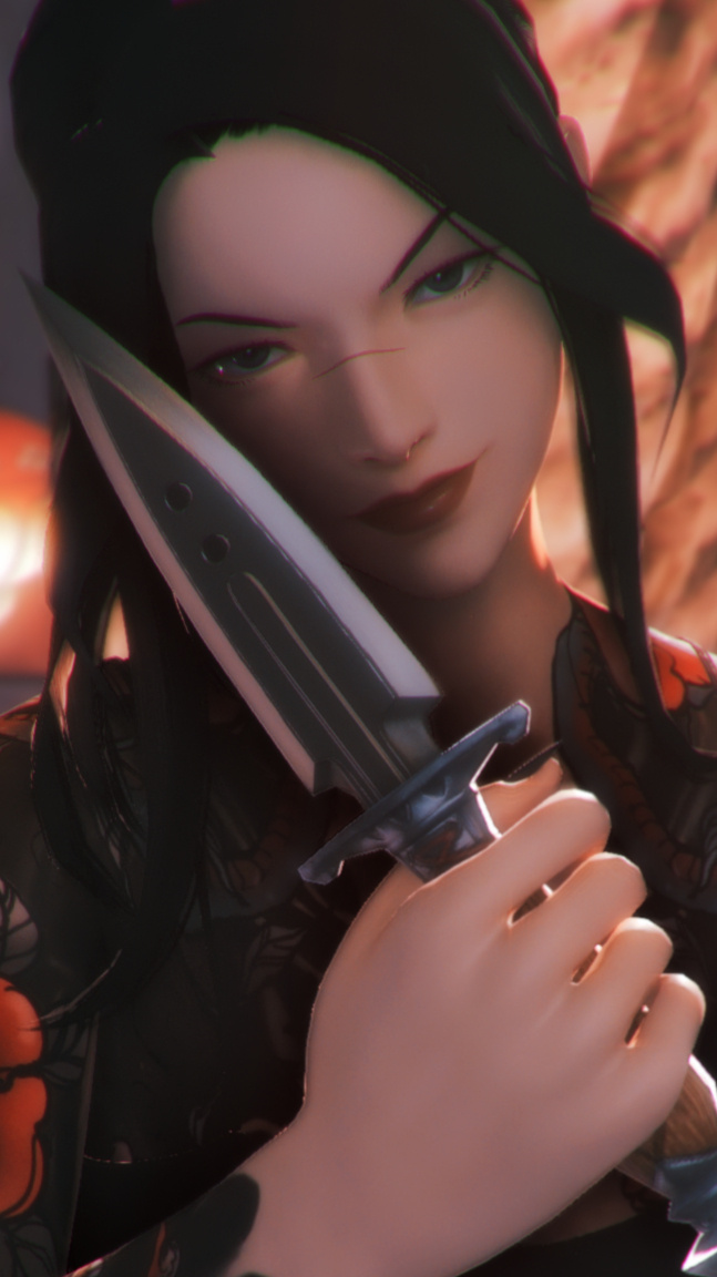 🗡️ PHYSICAL FEATURES. A slender, healed-over scar crosses the top of her nosebridge. Steel-grey eyes are framed by thick, ink-black hair. Her nails are stained like ebony, delicately shaped to a point.🗡️ FIRST IMPRESSIONS. Though Kotone is all charm and elegance at first glance, her sharp eyes belie an innate tenacity that disarms and unsettles. Look close enough and hints of black and red tattoos can be seen under the sleeves of her kimono, suggesting she might not all be what she seems.