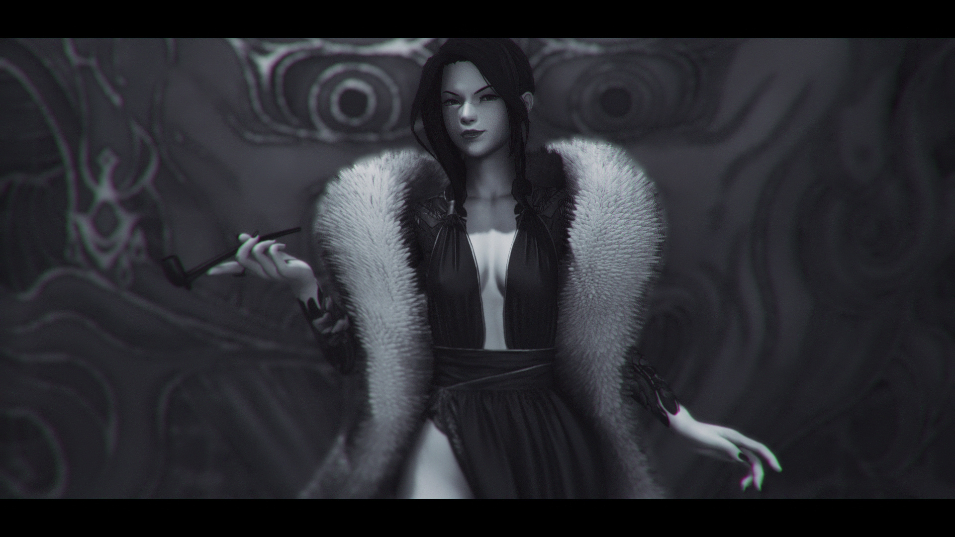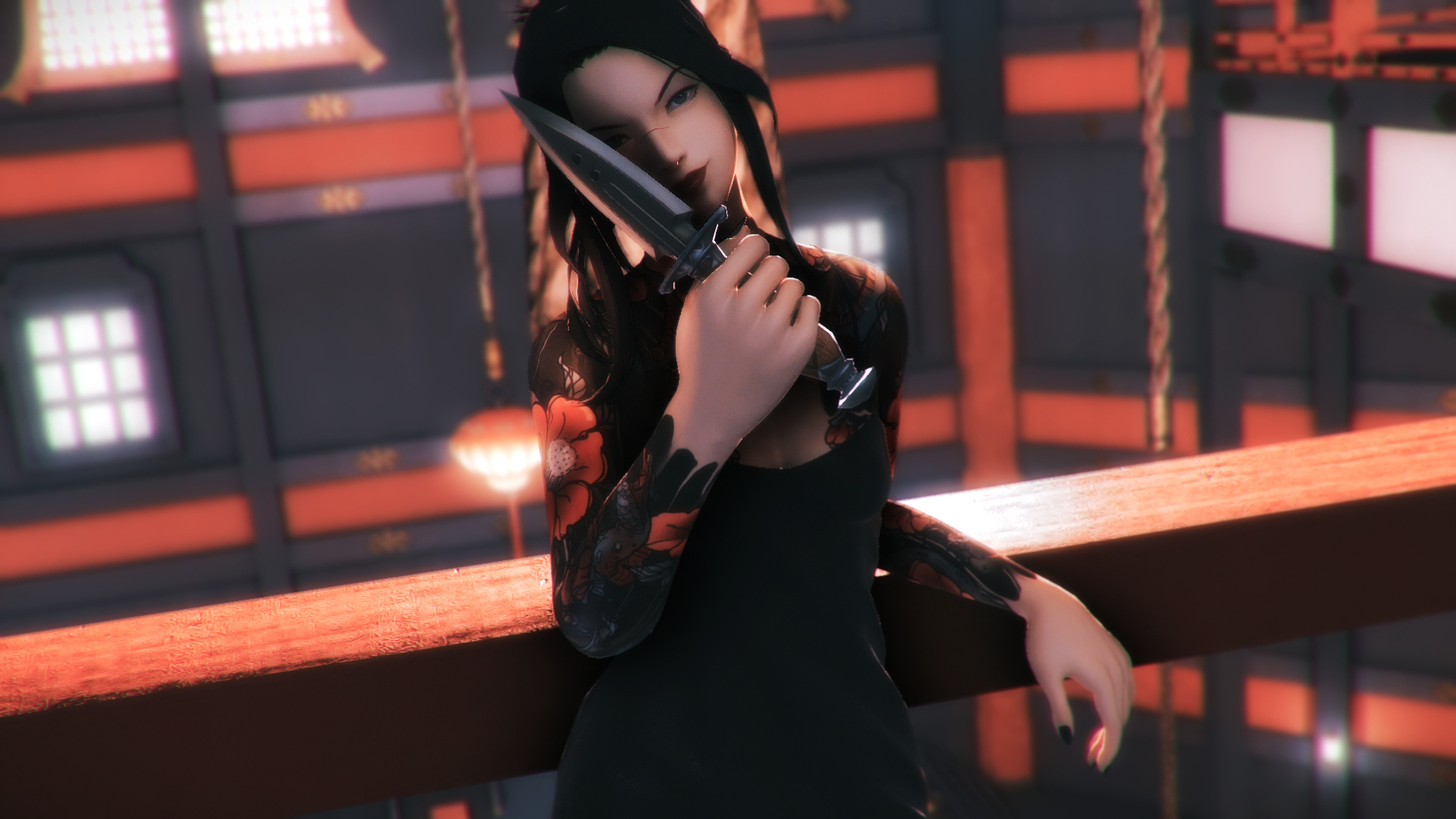 🗡️ PHYSICAL FEATURES. A slender, healed-over scar crosses the top of her nosebridge. Steel-grey eyes are framed by thick, ink-black hair. Her nails are stained like ebony, delicately shaped to a point.🗡️ FIRST IMPRESSIONS. Though Kotone is all charm and elegance at first glance, her sharp eyes belie an innate tenacity that disarms and unsettles. Look close enough and hints of black and red tattoos can be seen under the sleeves of her kimono, suggesting she might not all be what she seems.