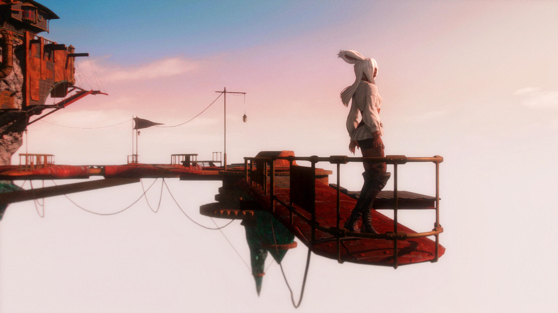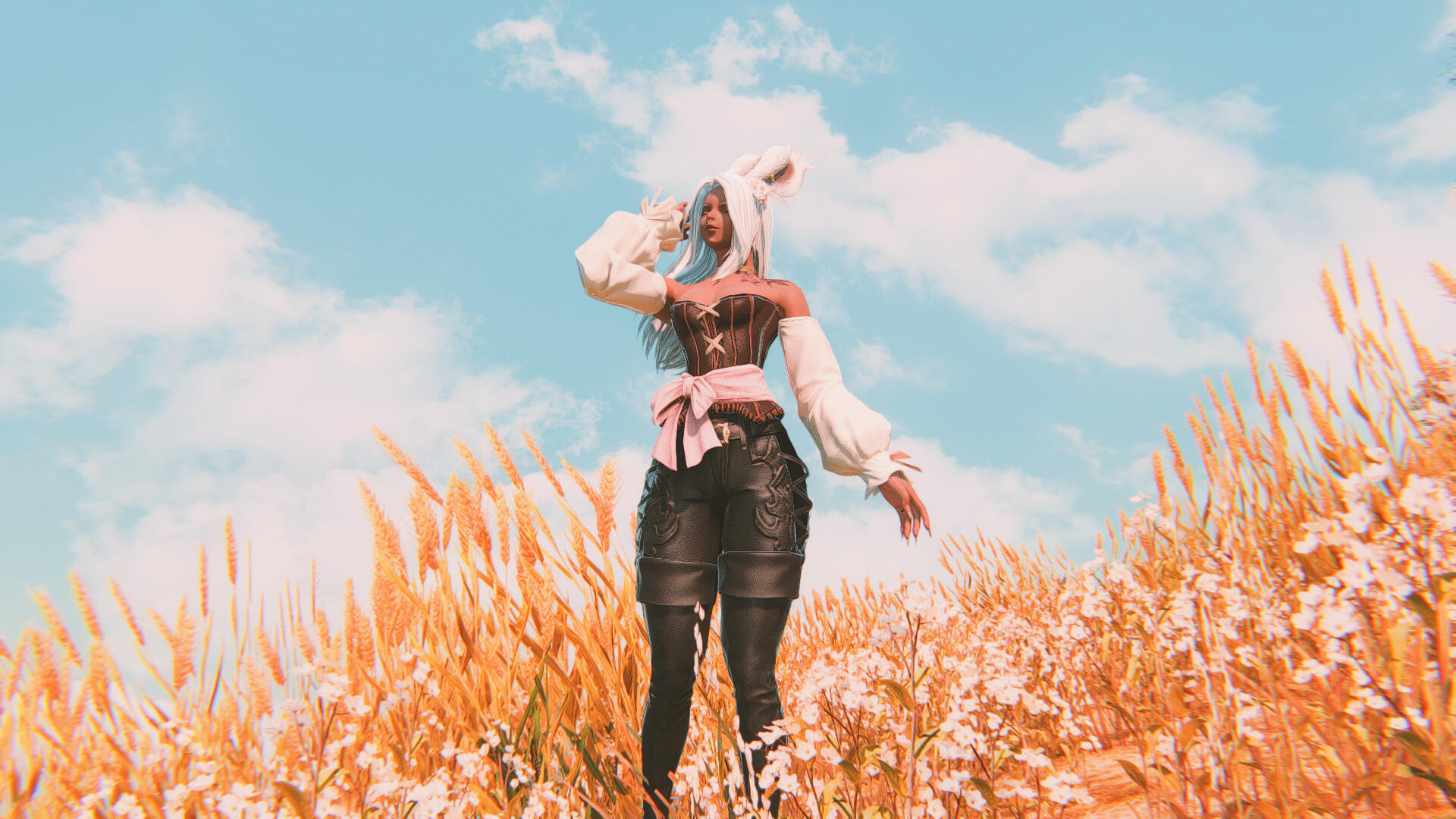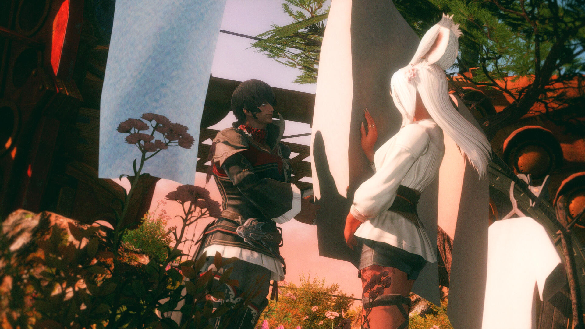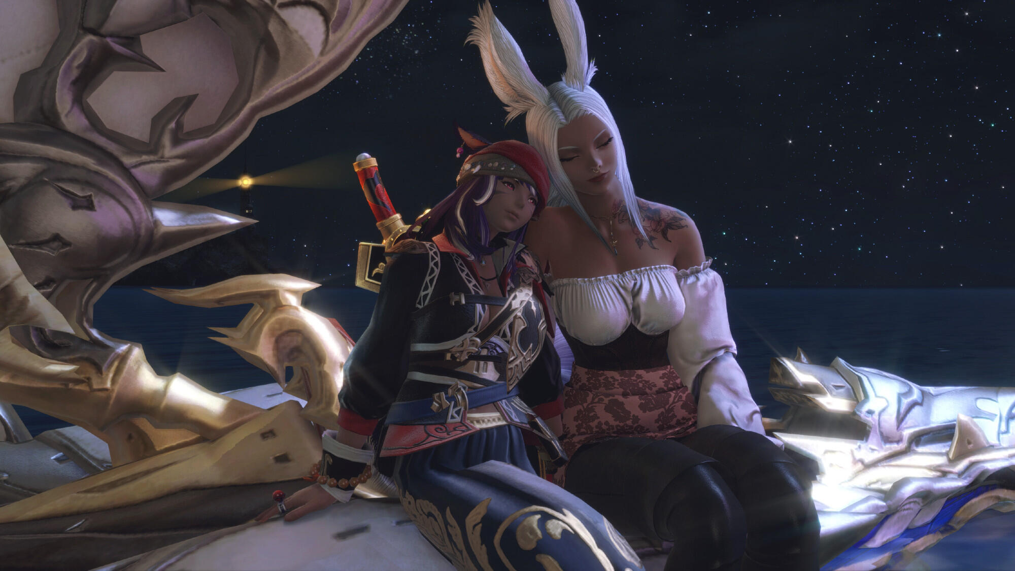 🌿 TO BE A SKY PIRATE. Renaming their newfound airship The Strahl, they traveled as far as their ship would carry them, barely making it to the island nation of Thavnair where they took to mercenary work to survive. During this time, Yrja befriended a vivacious Thavnairian sage, Sierra bihn Gamduhla, who helped them find work around the city. It was during this time that both women felt the beginnings of a budding romance, though their feelings remained hidden until they crossed paths again years later.After discovering a lead on their missing father, their travels took them past Eorzea to the Sea of Clouds, where they paired up with infamous Sky Pirate and ever-charming leader of the The Redbills, Leofard Myste. Eventually they crossed paths with the Warrior of Light, where adventure awaited them at the fabled Void Ark...