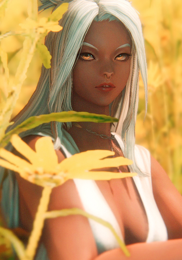 🌿 PHYSICAL FEATURES. Shorter than average ears for a Viera, long delicate fingers with sharpened stiletto nails, honey gold eyes, and a front tooth-gap behind a rare smile.🌿 FIRST IMPRESSIONS. Yrja speaks with an accent reminiscent of other Rava who hail from the Golmore Great Jungle. Her figure is poised and lithe, standing out even in the largest of crowds. A fresh cutting of cherry blossoms can be found pinned carefully on silver tresses, its scent a gentle reminder of home.